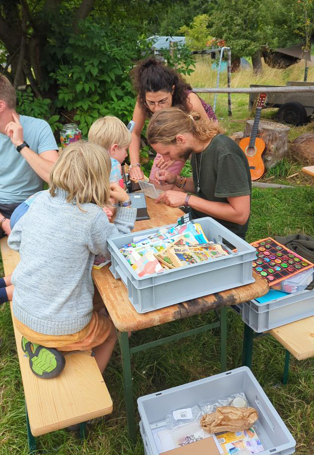 Meine Button Werkstatt ist geeignet für Kinder ab 3 Jahren. Sie ist ein ewiger Dauerbrenner und bleibt ein riesen Spaß für Jung und Alt. Im Laufe der Jahre habe ich eigene Techniken entwickelt und arbeite u.a. mit gepressten Blumen, Reflexfolie, Glitzer u.s.w. Aber auch Klassiker wie Zeitschriften zur Motivauswahl, Ausmalvorlagen und ein Malbereich dürfen natürlich nicht fehlen, kleine Kunstwerke sind garantiert!