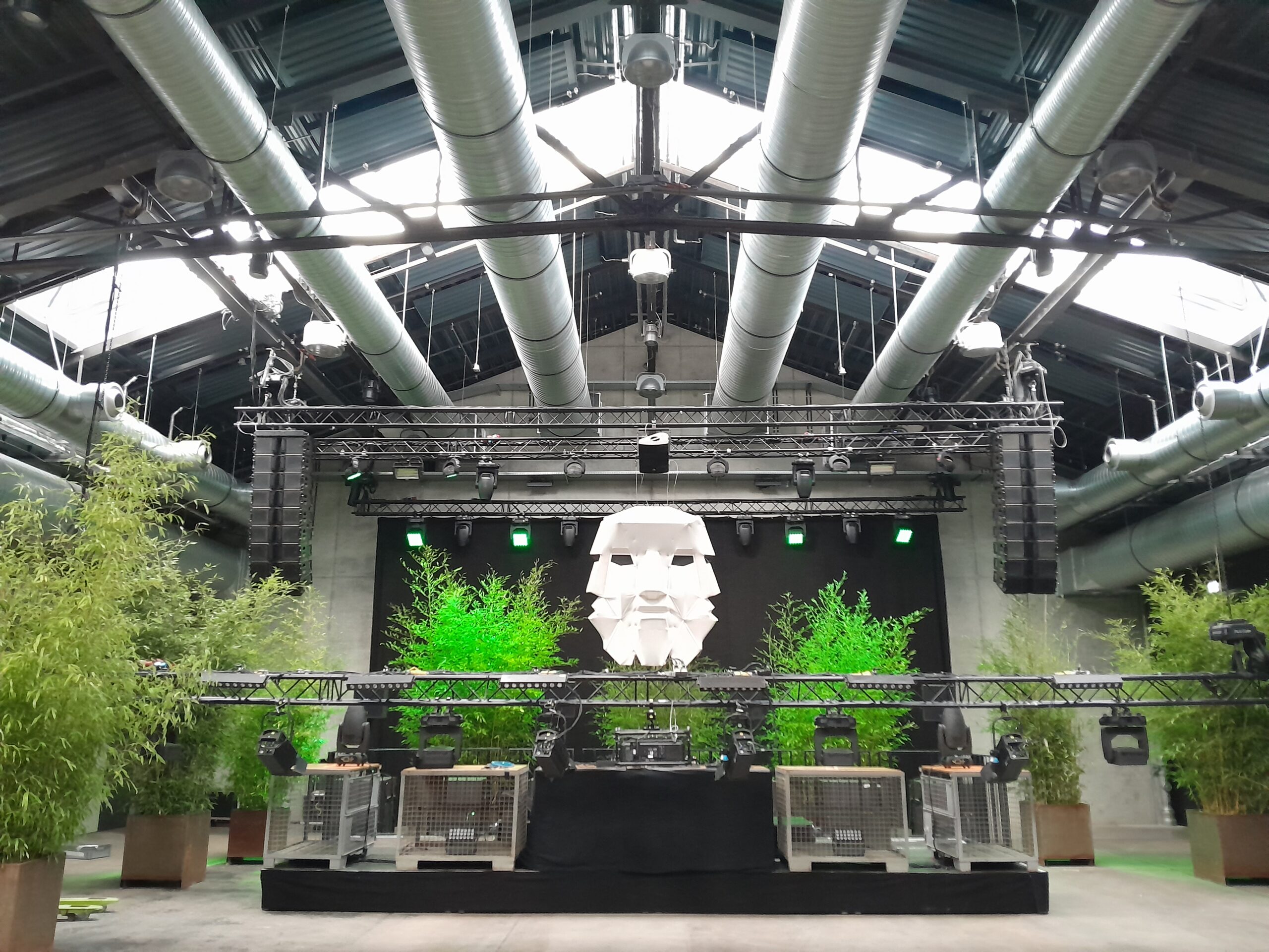 Gestaltung einer Deko-Maske auf dem Dach des Züblin Parkhauses.